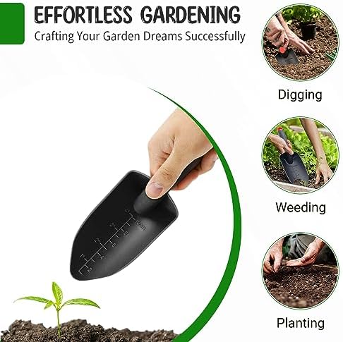 【Ideal for Gardening Tasks】 11″ trowel garden tool is perfect for digging, weeding, planting and seed. Features ergonomic, non-slip grip, hang-hole for easy storage, and a clear scale for quick measurements. Narrow design for precise transplanting.