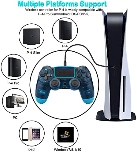 【Long Time Suitable Gameplay】The Transparent Blue and Blue Diamond controllers p-4 built-in the big capacity rechargeable battery,requiring only 2 hours of charging time and up to 8 hours of playtime.The mando for can be recharged using any micro USB wire and it will turn itself off to save power if it is not in use for a period of time.Please charge.