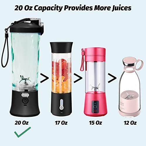 20 Oz Portable Blender USB Rechargeable, Supkitdin Waterproof Personal Blender for Shakes and Smoothies, with 6 Ultra-sharp Blades for Travel, Office & Sports (Black)