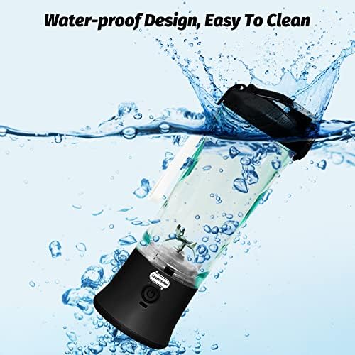 【Water-proof USB Rechargeable Port】Built-in 4000mAh rechargeable battery, this portable blender could serve 15 cups of juice after a single charge; Its Type-C charging port is water-proof design, you can charge it by AC adapter, power bank, computer or other USB power source, no worry about liquid get inside, and you can immerse it in water about 10 minutes, very convenient to clean.