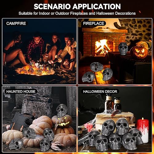 Realistic Skull Design: our camping fire skulls boast a realistic and lifelike design that is sure to add a spooky element to your gathering; Flames escape out the eye sockets, mouth of the skull at the same time, giving a more realistic and spooky presence, ensures maximum resistance to extreme heat and open fire, making it ideal for outdoor use, ensuring they will keep your pit looking spooky