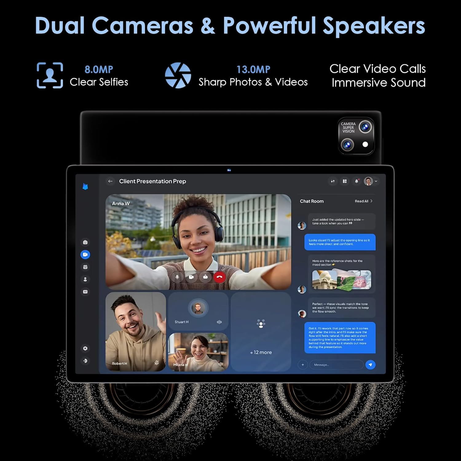 [Smart Productivity & Long-Lasting Battery] Power through work, study, and creative tasks with the 8000mAh long-lasting battery. Includes keyboard and mouse for smooth typing and navigation. Enjoy 1s Face Unlock, Split-Screen multitasking for running two apps at once, and Screen Mirroring to cast content to your TV or projector. Capture clear photos and video calls with 8MP front and 13MP rear cameras. Additional features like app widgets, smart notifications, and gesture controls make it perfect for online classes, virtual meetings, creative projects, and entertainment.