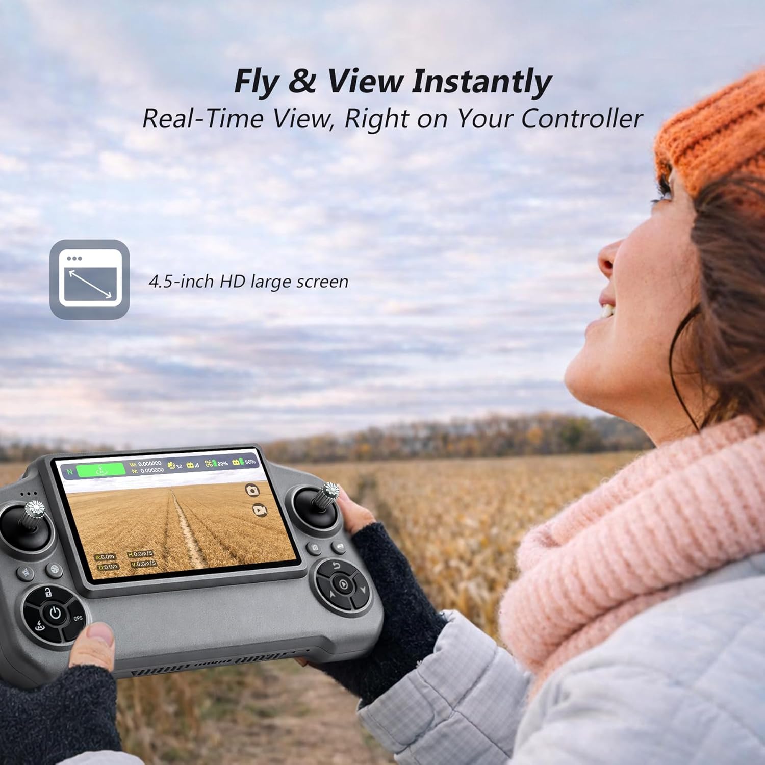 【Impressive 10000FT Long Range & 5G FPV Transmission】: Control this GPS drone from up to 10000 feet away with crystal-clear 5G real-time FPV feed on the 4.5″ HD screen remote – great for exploring vast areas while seeing exactly what the drone with camera sees.