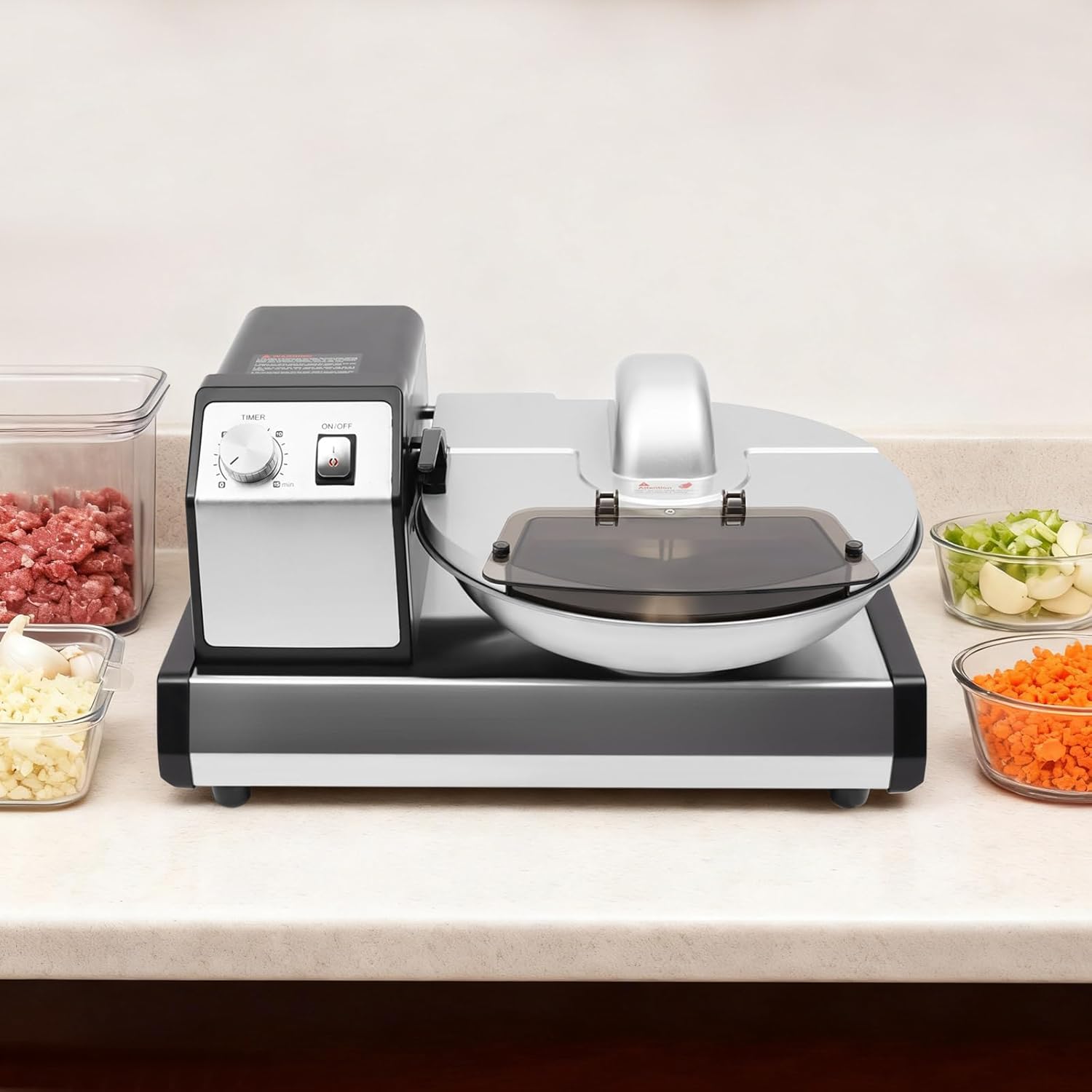 Powerful & Efficient Processing: This commercial food processor features dual pure copper motors and sharp S-blades rotating at 1500 RPM, delivering up to 100 lbs of ingredients per hour. The 5.28QT large-capacity bowl handles meat grinding, vegetable chopping, and sauce blending efficiently, ideal for busy kitchens and meal prep