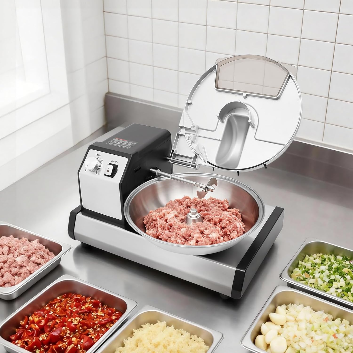 3000W Commercial Food Processor, 5.28QT Electric Meat Grinder & Vegetable Chopper for Restaurant & Home Kitchen, Heavy-Duty Stainless Steel Food Chopper with Timer, 100 lbs/Hour High Output