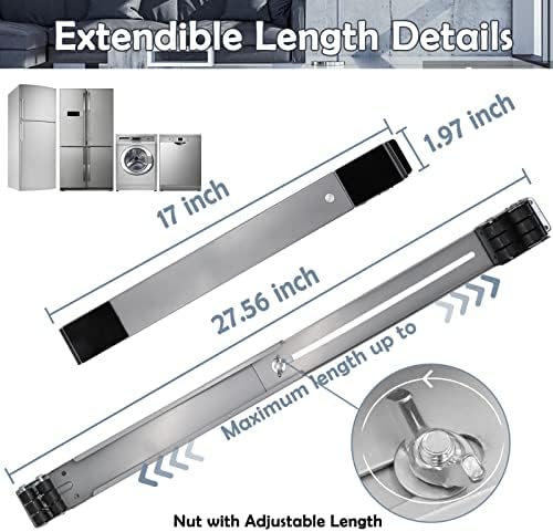 360° Universal Extendable Furniture Appliances Rollers, Strong Mover Tools with 24 Roller & Brake Equipment Strong Base for Washing Machines Refrigerators Dryers Bearing Grey