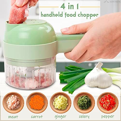 4 in 1 Handheld Electric Vegetable Cutter Set – ALPENKOK Electric Garlic Chopper Wireless Food Grinder Vegetable Chopper Chili Pepper Chopper Onion Cutter Mini Food Chopper Electric Garlic Masher