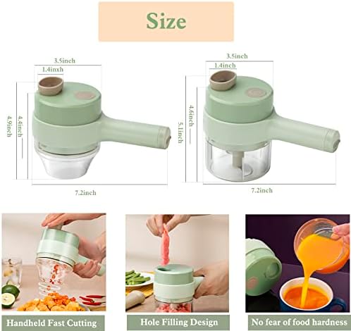 3.【4 in1 design】This handheld vegetable cutter has a closed container and non-closed cup, which includes 4-in-1 functions of slicing, chopping, peeling. It has many functions and has a sharp blade to meet your kitchen needs.You also can have an electric vegetable slicer and an electric meat grinder at the same time.