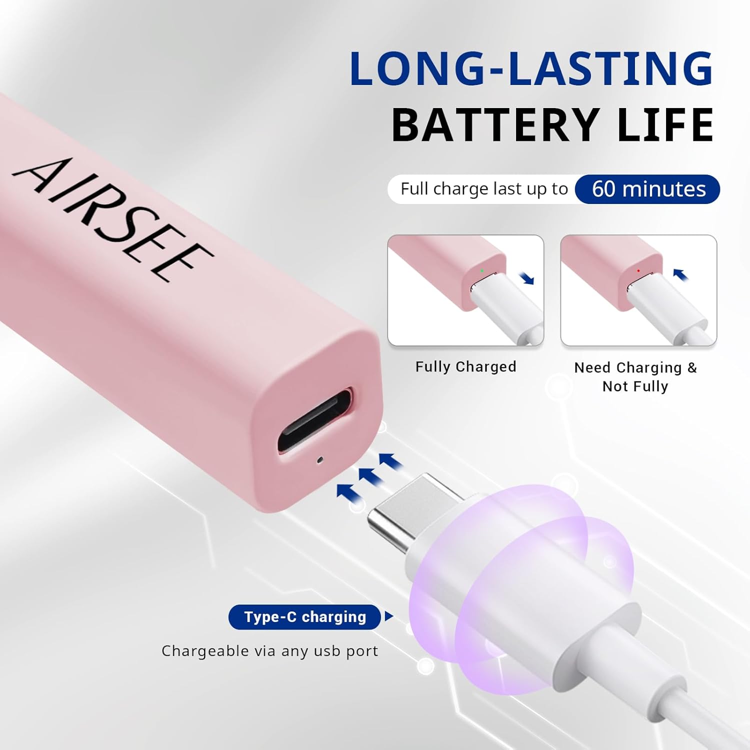 High-Quality and Rechargeable: Made of premium materials, sturdy and durable. Equipped with a 300mAh battery, it can be used for up to 60 minutes on a full charge. Additionally, the USB port can be used with chargers as well as other USB devices