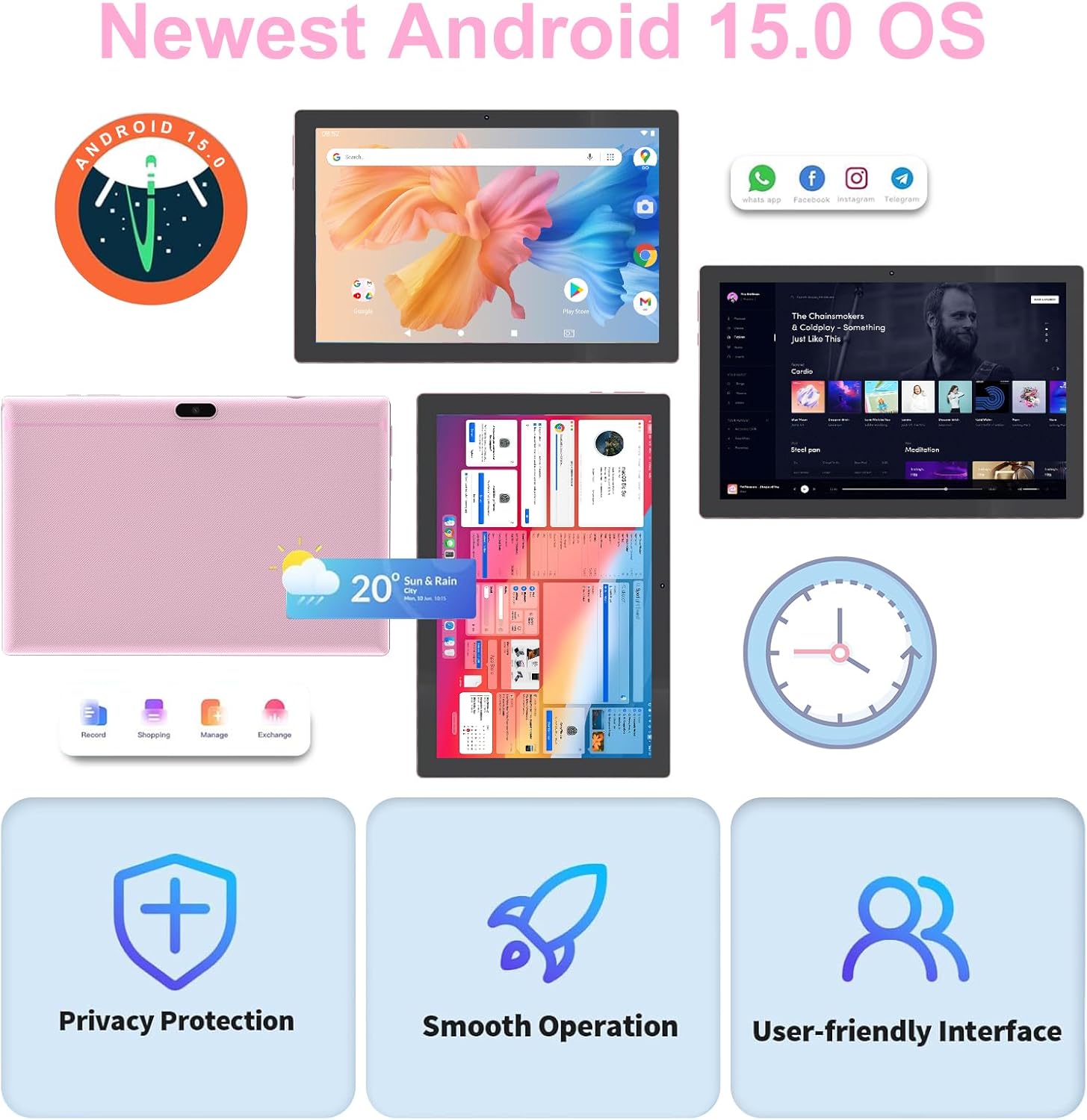 【High Performance】Android tablet features the latest operating system Android 15 processor ensure of excellent performance, seamless multitasking, getting rid of annoying ads, emphasizing privacy and security by designing enhanced app permissions, providing you complete management control.