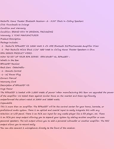 Audio Home Theater Audio bLuetoot Receiver+(2) 5.25″ Black in-Ceiling Speakers Heavy Duty RPA60BT HC55Black DB13RWK43