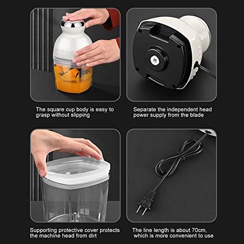 Portable: this food chopper has a large enough capacity to process food anywhere, anytime and is easy to carry. With three knife heads, it easily adapts to different ingredients.