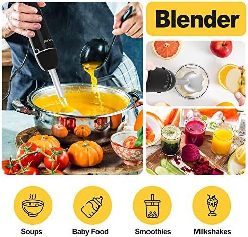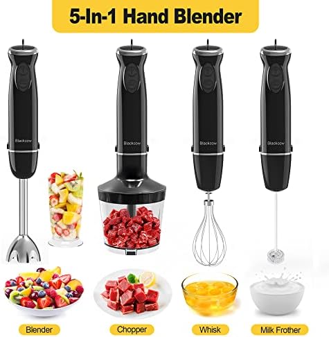 【Easy to Clean & Use】Blackcow electric handheld blender has a detachable design and can be easily switched between attachments. Detachable design makes your immersion blender easy to clean and store.The motor unit and chopping bowl lid can be cleaned with a damp cloth. All other parts are dishwasher safe.