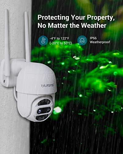 blurams Security Camera Outdoor, 3MP Dual-Lens Wi-Fi Outdoor Camera, 360° PTZ Cameras for Home Security w/Motion Tracking, Two-Way Talk, 2K Color Night Vision, IP66 Weatherproof, Siren Alarm