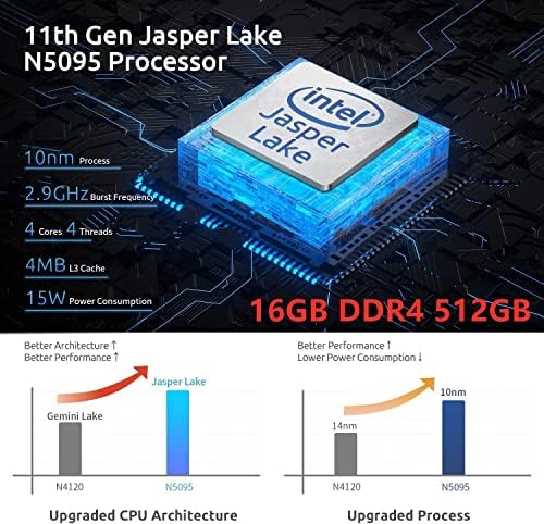 ❤️【The 11th Gen Jasper Lake N5095 Processor】- This mini desktop computer delivers lightning-fast performance. With 4 cores, 4 threads, and 2.0GHz to 2.9GHz, this processor is based on the new Tremont architecture and manufactured with 10nm advanced technology. It’s also 35% faster than its previous generation counterpart, and can easily handle multiple tasks. The maximum memory speed and capacity are 2933MHz and 16GB, respectively, ensuring smooth and efficient operation.