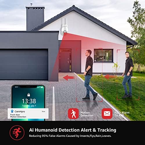 【AI Human Detection&2 way Talk】 With AI intelligent motion detection,this 5mp security camera can distinguish between people and animals, reducing 95% false alarms caused by insects,flys,rain, leaves,It can send alerts to your mobile phone. You can customize the detection area and sensitivity on the mobile APP to focus on the monitoring area you want. The built-in microphone and speaker allow you to communicate with visitors no matter where you are.