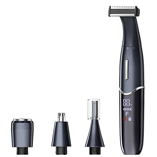 Body Hair Trimmer for Men, Type-C Rechargeable Pubic Hair Trimmer, Groin Hair Trimmer, Beard Trimmer, Wet and Dry Electric Razor with LED Display, Safety Lock and 4 Heads, Practical Gifts for Men