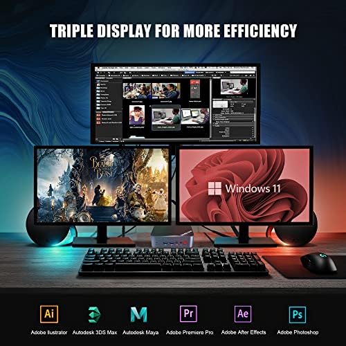 【Support 4K Triple Screen Output】 Mini Computer W11 Pro support ultra 4K HDMI, true to life display quality brings you a stunning visual experience. It also comes with Dual 4K HDMI+Full Function Type-C, which allows three displays to be connected at the same time, offering a better graphic effect and improving the work efficiency.