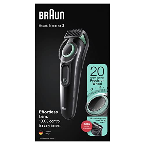 Achieve your style effortlessly with the Braun BT3221 beard trimmer & hair clipper for men. Delivering ultimate accuracy for an even cut, the BT3221 features a precision dial with 20 length settings and comes with Lifetime Sharp Blades. Washable trimmer head and comb (device should not be held under water).