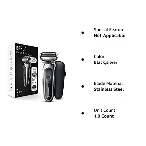 Braun Series 7 7020s Flex Electric Razor for Men with Precision Trimmer, Wet & Dry, Rechargeable, Cordless Foil Shaver, Silver