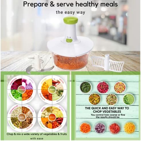 ✅ A PERFECT GIFT FOR ALL OCCASIONS: What else can make a better gift for your loved ones than this gift of health. Use it as an onion chopper, garlic chopper, salsa maker, coleslaw chopper, cauliflower ricer, indian chopper, manual food processor. It makes eating veggies fun and attractive for all ✅ BUY WITH CONFIDENCE: We are the trusted kitchen brand with thousands of happy customers. Your purchase is backed by our 100% satisfaction guarantee and we will solve any problem within 12 hours.