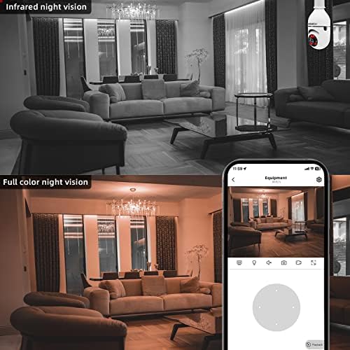 【3MP HD & Infrared Night Vision】- 3MP surveillance light bulb camera is able to provide clearer and more detailed images, which helps you get rid of blurred image quality. You can enjoy higher image quality while viewing images/videos via the app. HD infrared night vision allows you to see clear images even in the dark.