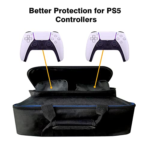 Carrying Case for PS5 Storage, qozabualy Travel Bag Compatible with P.S. Five, Travel Carry Case for PS5 Console Disk or Digital Edition/ Playstation 5 Controller/ PS5 Game Cards (BAG ONLY, Black-Blue)