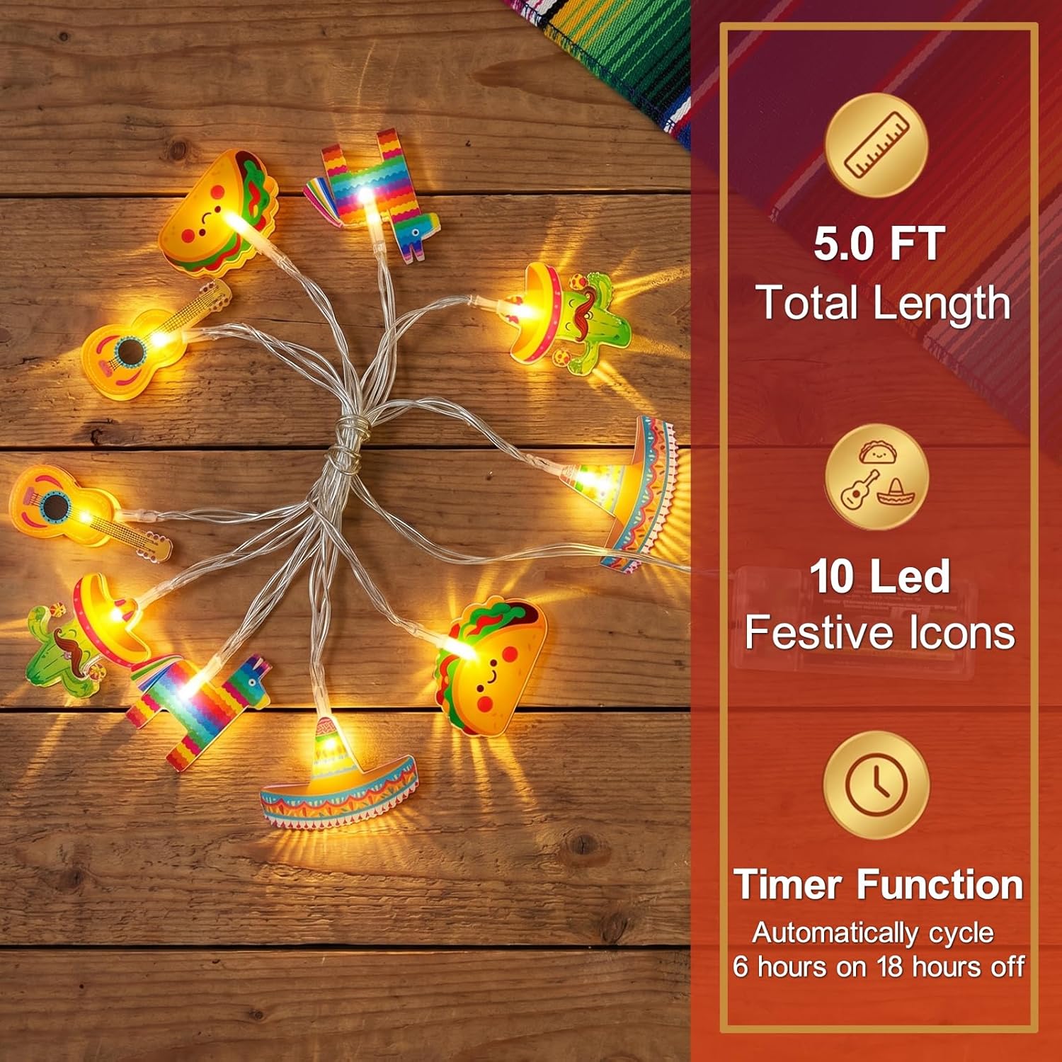 Cinco De Mayo Theme String Lights Timer Battery Operated(not Included)