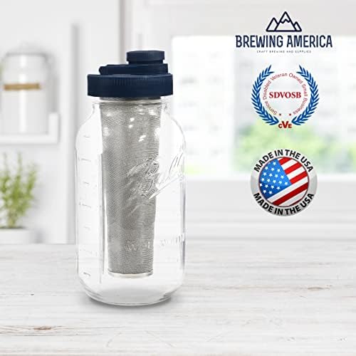 ✅ DURABLE COMPONENTS: Includes BPA Free Patented Brewing America Lid with removable silicone seal, stainless steel mesh 160-micron dutch weave cone-shaped metal strainer filter, and 64 oz wide mouth mason jar for brewing or storing