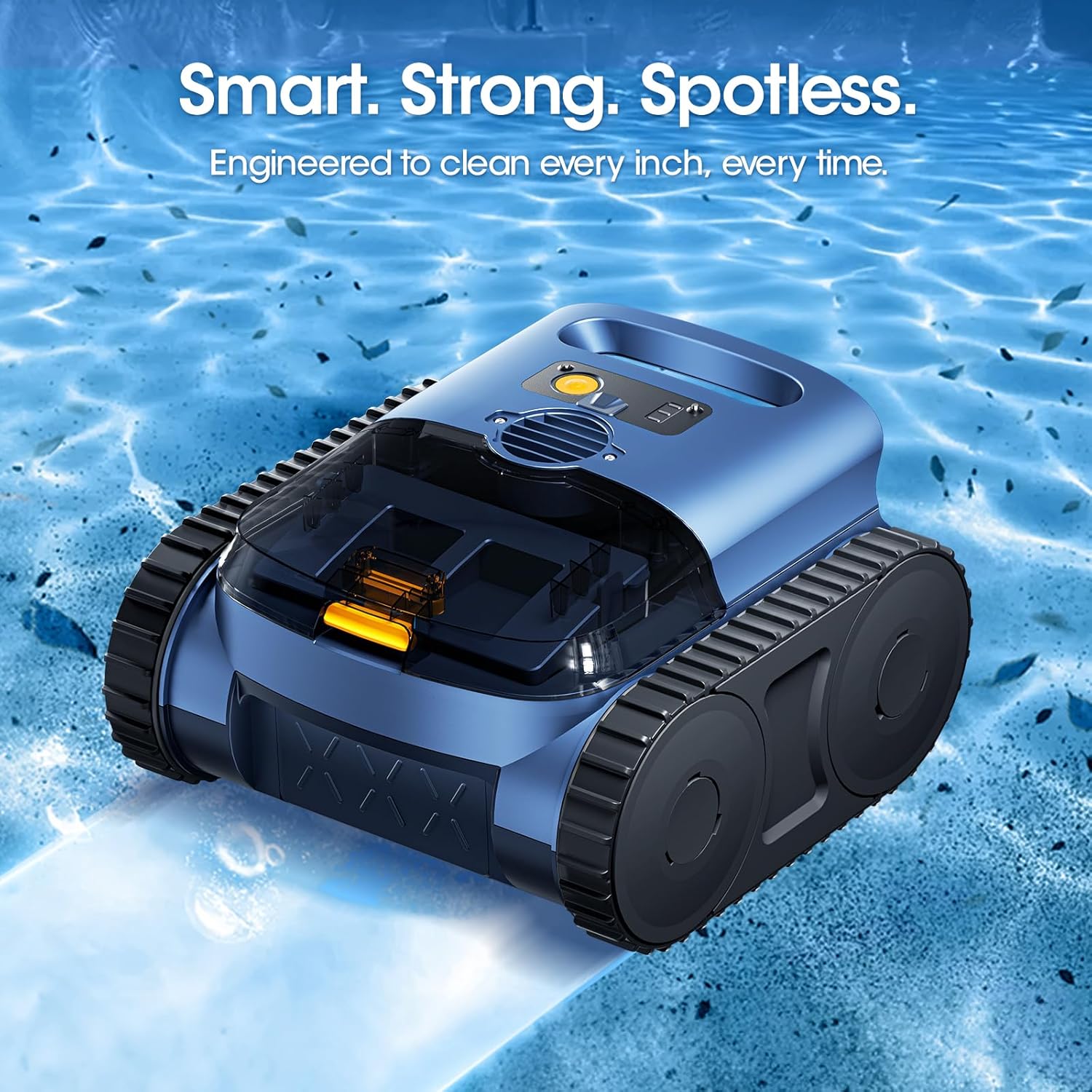 Precision Mobility with Caterpillar Tread Design: Engineered with industrial-grade caterpillar treads, this robotic pool vacuum maintains exceptional traction over drains, steps, corners, and uneven pool floors. The advanced tread system minimizes slippage, improves wall-climbing stability, and ensures consistent.