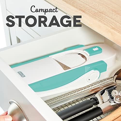 DASH Safe Slice® Mandoline Slicer, Julienne + Dicer for Vegetables, Meal Prep & More with 30+ Presets & Thickness Adjuster – Aqua