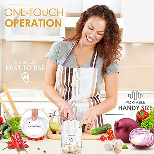 Electric Garlic Chopper, Portable Cordless Mini Food Processor, Rechargeable Vegetable Chopper Blender for Nuts Chili Onion Minced Meat and Spices BPA-Free(White)