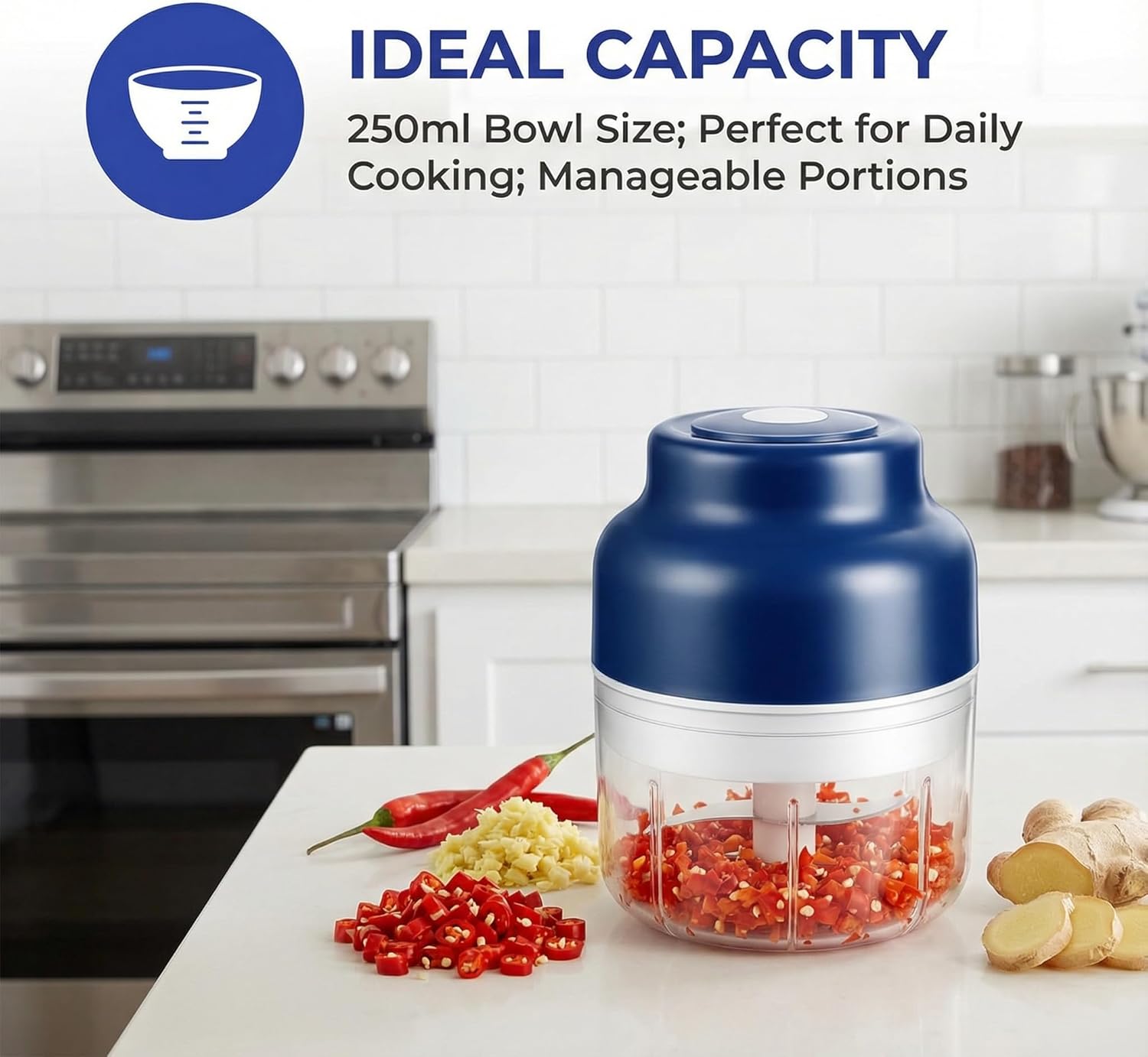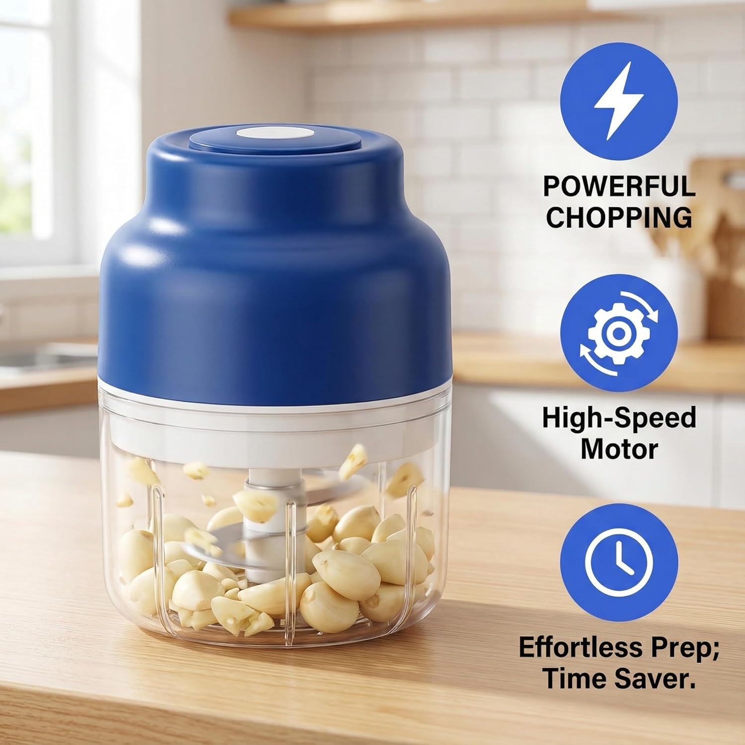 Durable Build & Reliable Performance:Constructed with a robust PC container and thick stainless steel blades, this rechargeable chopper withstands daily use. Sharp blades retain their cutting performance, and the compact design makes it a dependable companion in any modern kitchen