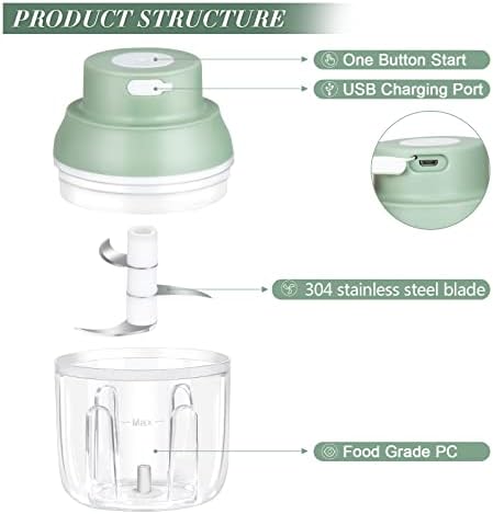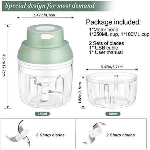 Electric Mini Chopper, Powerful Garlic Chopper, Onion Grinder, Masher, Grinder, Ginger, Pepper, Vegetable Food Processor, Egg Beater, Double Bowl & Two Blade(250ml&100ml)