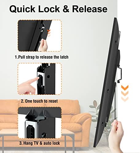 Safe and Sturdy – The low profile TV mount can lock and release quickly with the auto latch design. Heavy duty TV mount passed rigorous test to hold your TV high and safe.