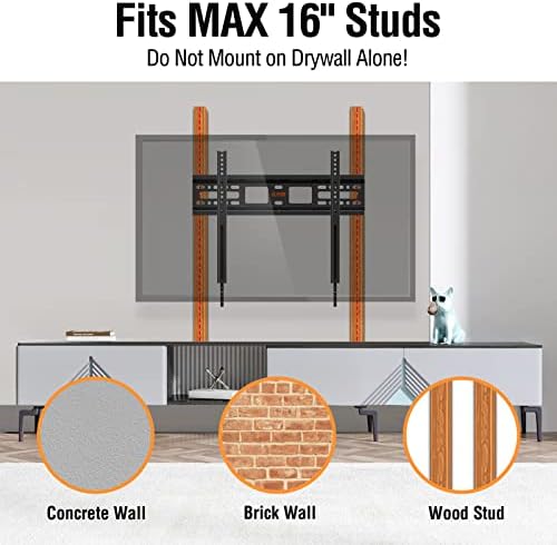 Easy Installation – TV mounting bracket comes with necessary hardward to mount on 12″, 16″ wood studs or concrete/brick wall. (The concrete anchors will be sent per request.) Please DO NOT mount into drywall alone!
