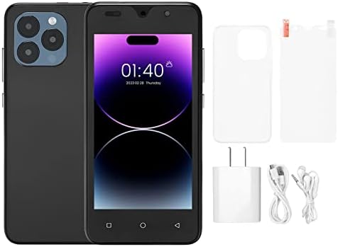 FOLOSAFENAR Ultra Thin Mobile Phone, HD Camera Face Unlocking 5in Screen Mobile Phone 1280×720 Resolution Dual SIM for Study(Black)