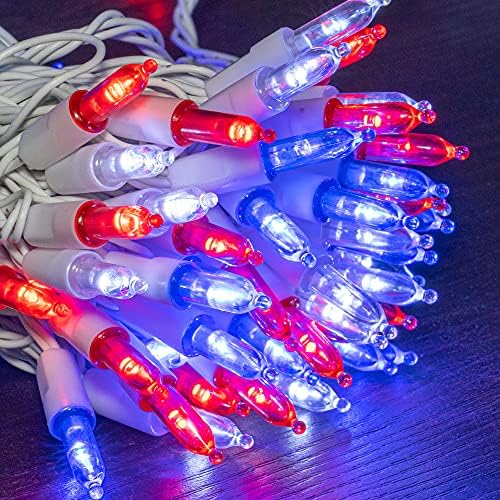FUNPENY 200 LED Outdoor Independence Day Lights, 66 FT Mini String Light, Waterproof Tree Lights for Outdoor Party Patriotic Memorial 4th of July Wedding Christmas Decoration (red, Blue, White)