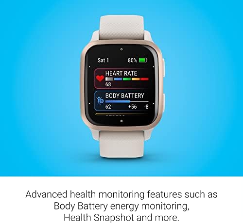 Garmin Venu® Sq 2 – Music Edition, GPS Smartwatch, All-Day Health Monitoring, Long-Lasting Battery Life, AMOLED Display, Peach Gold and Ivory