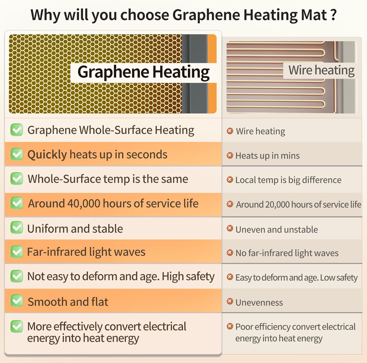 [Advantages of Graphene Heating] Graphene has a thermal conductivity up to 2000 times higher than copper, which means that the same amount of electricity consumption can generate more heat. And it is more stable, controllable, and safe than wires heating. Therefore, it is widely used in fields such as medical equipment, aerospace, etc