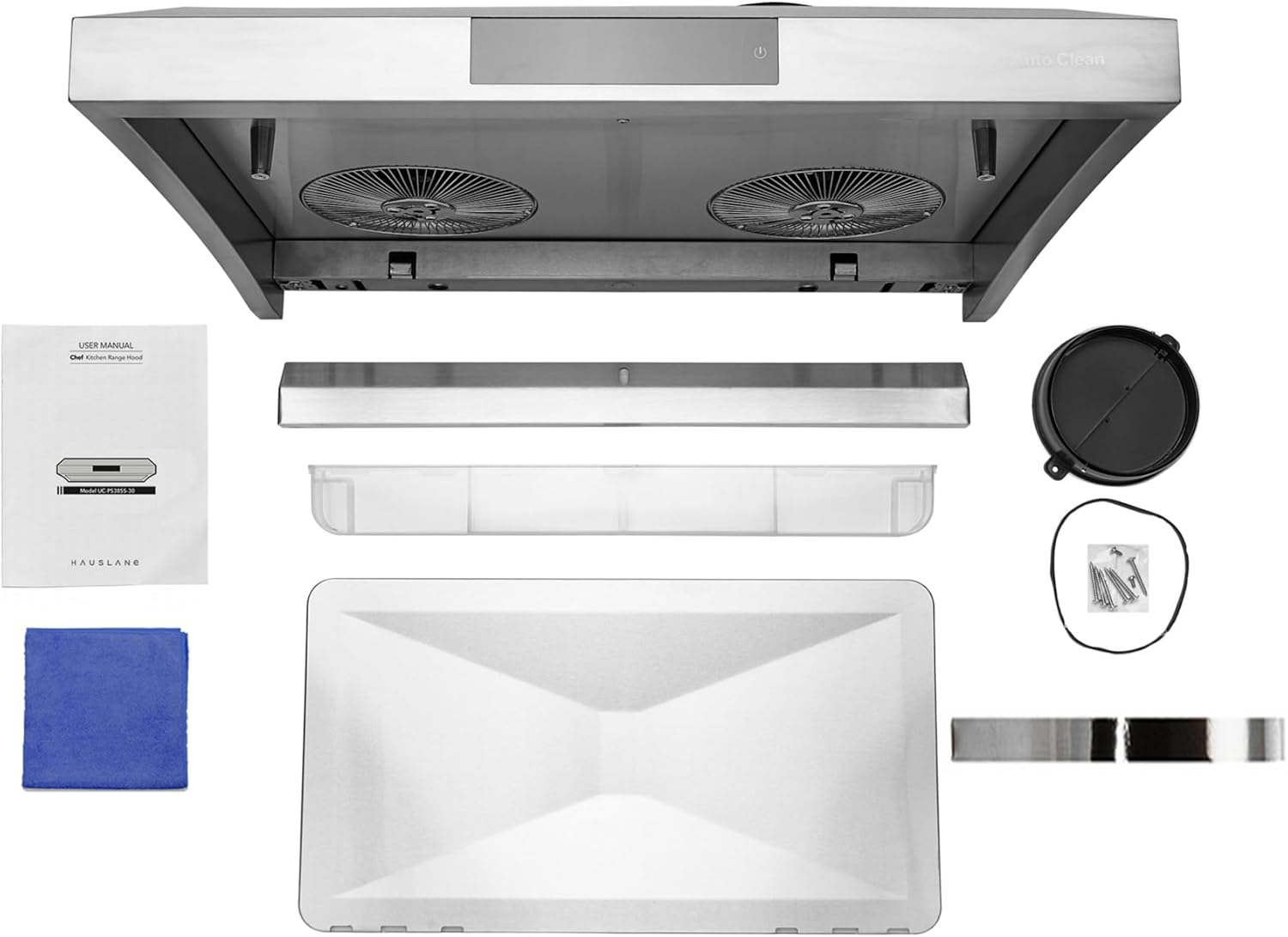 Hauslane Range Hood 30″ Under Cabinet, 950 CFM Kitchen Range Hood | Steam Auto Clean Vent Hood, 6 Speed Kitchen Hood with Touch Panel | Stainless Steel Range Hoods Chef Series PS38