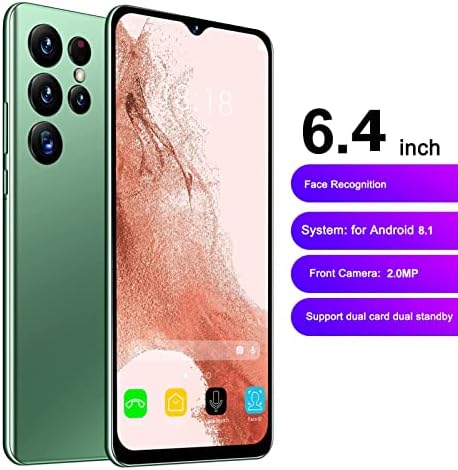 Heayzoki Unlocked Cell Phones, S22 Ultra 6.4 Inch Mobile Phone Hd Screen 16Gb 2GB Smartphone Set Face Unlocked Cell Phone for Android 8.1(Green)