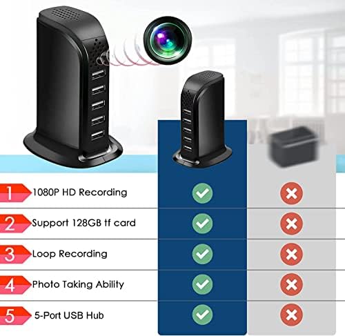 Hidden Camera USB Charger Camera WiFi USB Hub Spy Camera Nanny Cam HD Wireless Security Cameras Indoor USB Tower Covert Cam Motion Detection for Home Office Surveillance