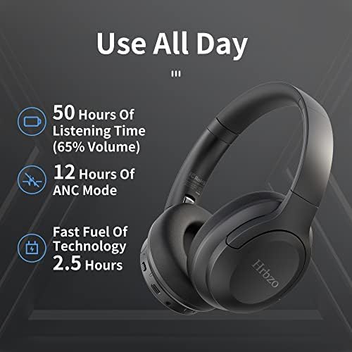 Hrbzo Wireless Headphones Over-Ear, Noise Cancelling Headphones Foldable Lightweight Headset for Cell Phone,PC for Prolonged Wearing…