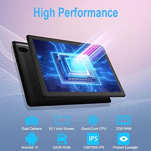 Powerful Performance – This 10 inch android tablet has a faster 1.5 GHz quad-core processor,32 GB of internal storage (add up to max 128GB with microSD,NOT included),2 GB of RAM,2+5MP Dual HD Cameras.It can meet your daily needs, like check email, browse recipes on your favorite websites,stay in touch with friends and family, and keep up to date with social media apps.