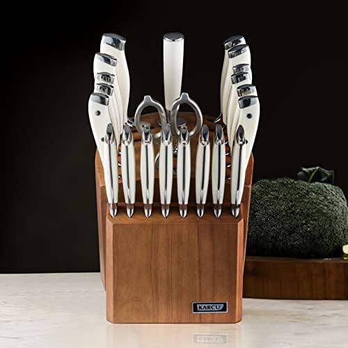 Karcu Kitchen Knife Set, German Steel Sharpener High Carbon Stainless Steel Knife Block Set