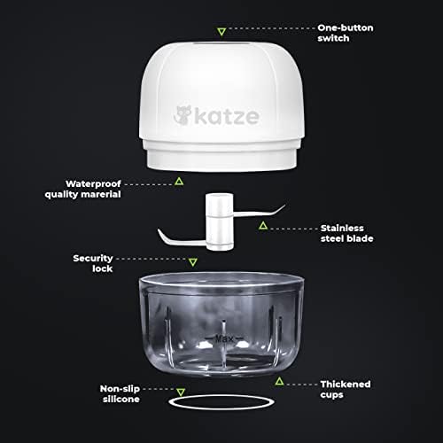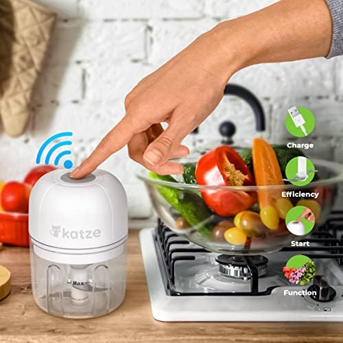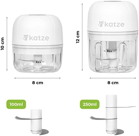 KATZE Electric Mini Food Chopper – Small Processor For Garlic, Onion, Vegetables, Fruit Salad, Dicing & Puree – Mincer For Kitchen (White, 250 ml + 100 ml)
