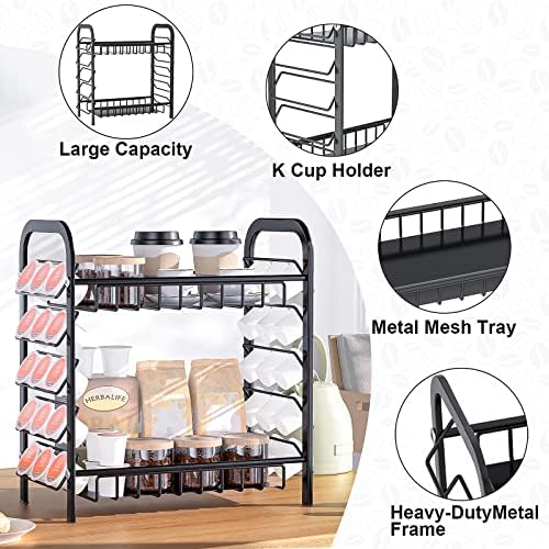 Kecio K Cup Holder, Large Capacity Coffee Pod Holder Coffee Bar Accessories and Cup Storage Organizer, Metal Coffee Station Organizer Save Space for Home, Kitchen, Office, Countertop
