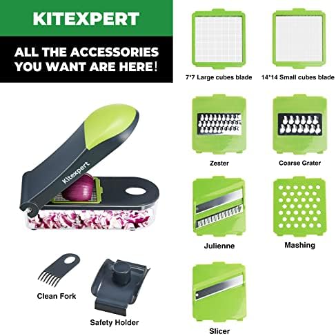 COMES WITH CHOP LID & CONTAINER: A 1.2-liter ABS food-grade safe container and a built-in grip lid allow you to chop food directly, without the clutter of knives and cutting boards. You can use the container to prepare vegetables on the Kitexpert veggie chopper until you’re ready to start cooking. This 7-piece set will make home-cooked meals easier and faster.