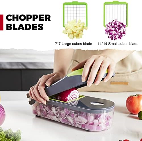 Kitexpert Vegetable Chopper, Onion Chopper Dicer Veggie Chopper with 7 Blades and Container, 7-in-1 Spiralizer Chopper Vegetable Cutter, Kitchen Vegetable Slicer Dicer Cutter Food Chopper (Grey)